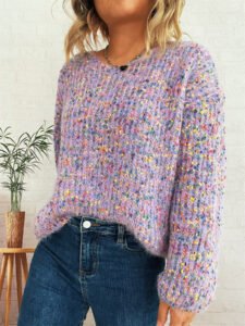 Stand out in any crowd! This colorful sweater features a unique multi-tone speckled pattern on a soft lavender base. Whether you’re pairing it with your favorite denim or layering it over a skirt, its “basic style” foundation makes it incredibly easy to dress up or down.