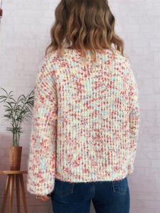 Stand out in any crowd! This colorful sweater features a unique multi-tone speckled pattern on a soft lavender base. Whether you’re pairing it with your favorite denim or layering it over a skirt, its “basic style” foundation makes it incredibly easy to dress up or down.