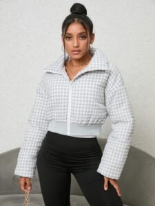 Elevate your wardrobe with the iconic style of our Houndstooth Zip-Up Jacket, a versatile piece that combines classic patterning with modern comfort. Made from soft 100% polyester fabric, this jacket strikes the perfect balance between warmth and breathability.