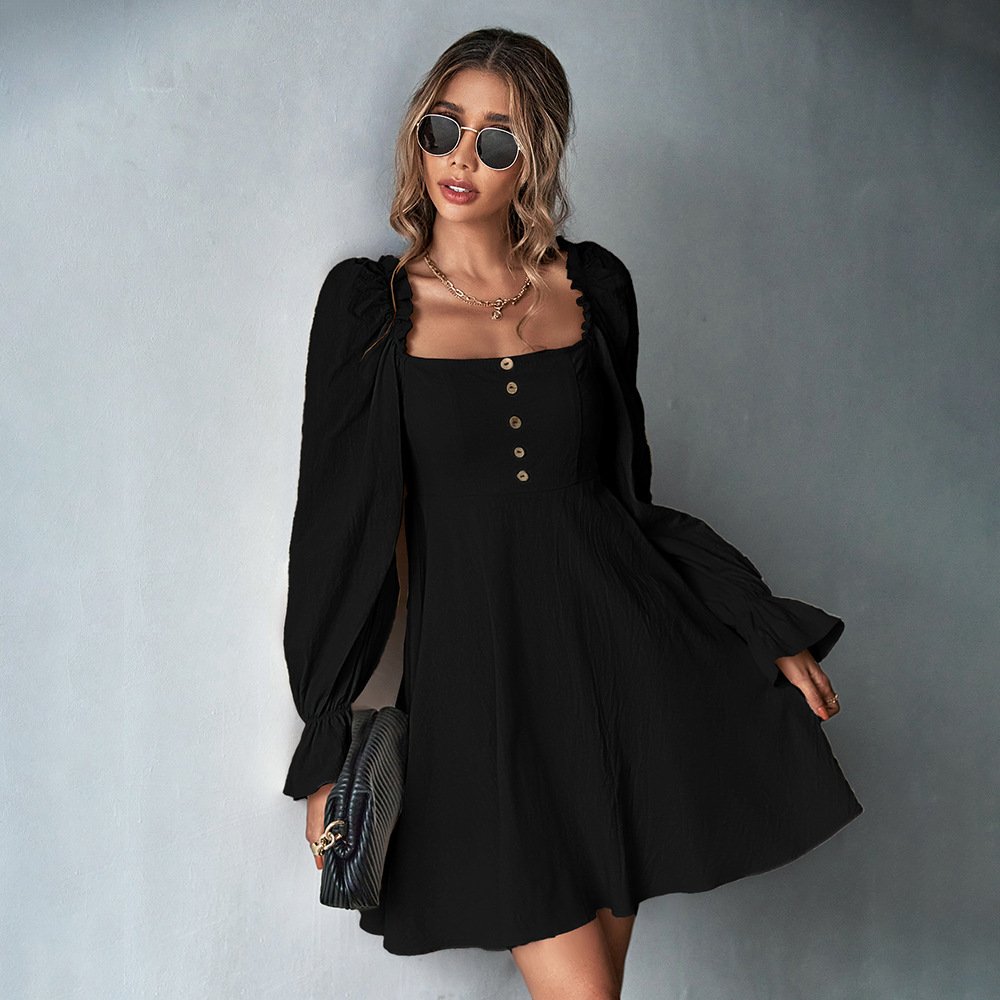 Black mini dress + khaki, green options. S-XL.