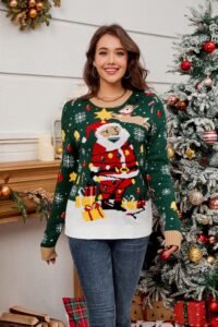 This Christmas sweater is a must‑have piece for December wardrobes, offering a cozy feel and a cheerful Santa design that stands out in photos and at parties. Wear it on Christmas Eve, Christmas morning, or any winter day when you want a little extra holiday spirit.